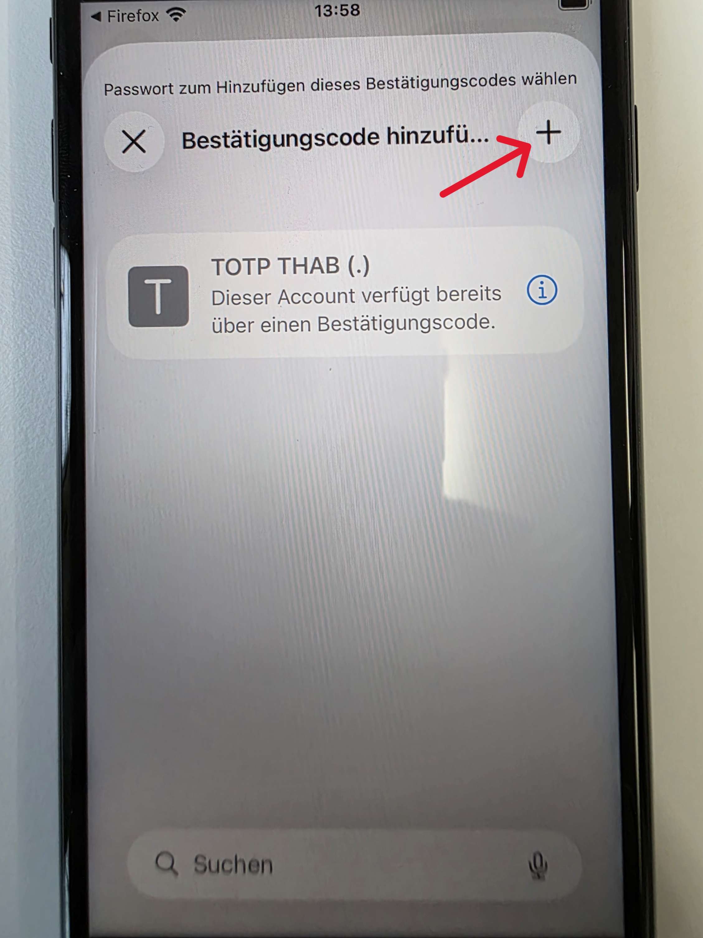 Nun klicken Sie auf das "+" rechts oben um den Code hinzuzufügen.