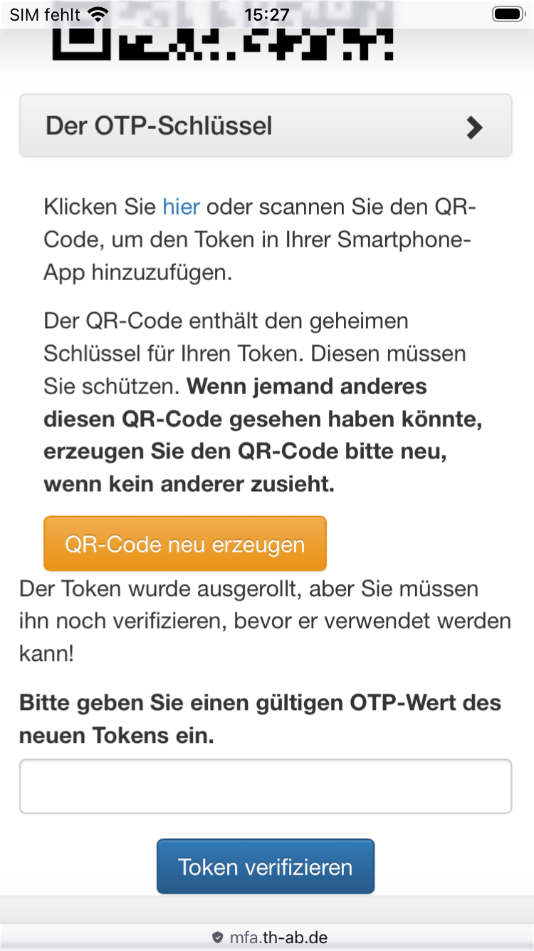 Der Code der Ihnen angezeigt wird muss unter dem QR-Code eingegeben werden. Dann auf Token verifizieren klicken und Sie sind fertig.