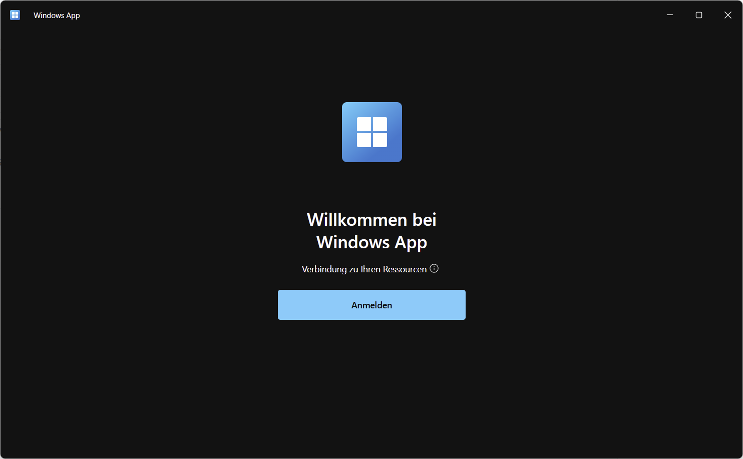 Starten Sie die Windows App und klicken Sie auf Anmelden