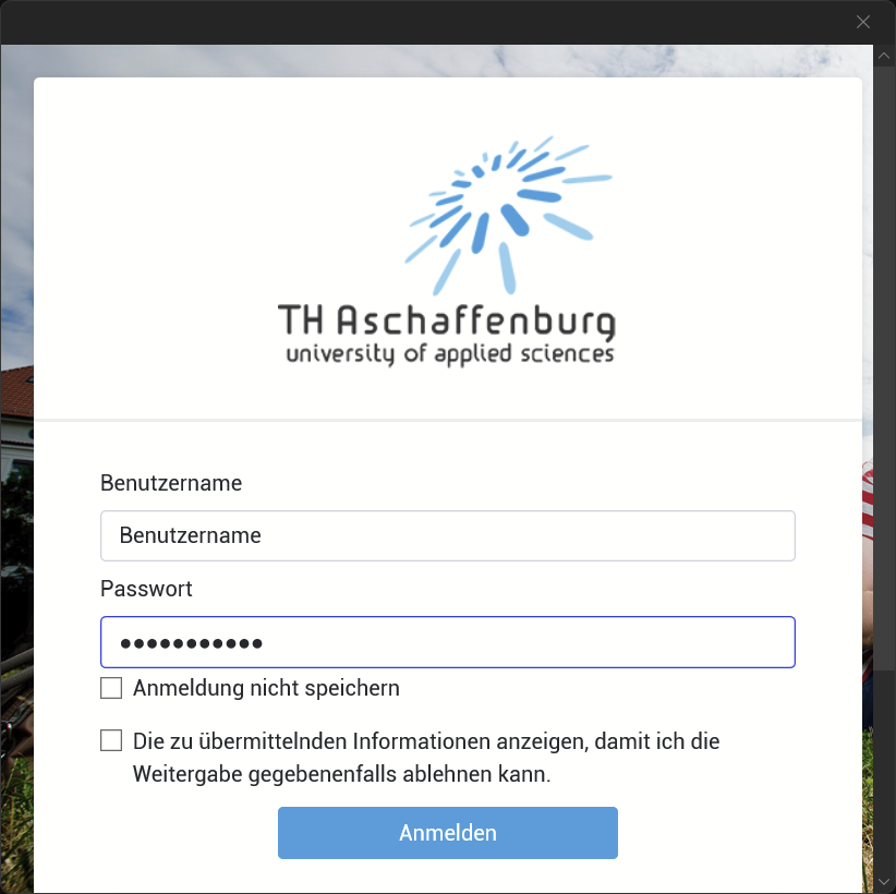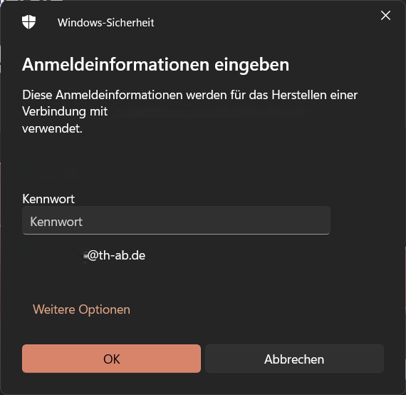 Geben Sie ihr THAB Passwort ein und klicken Sie auf OK