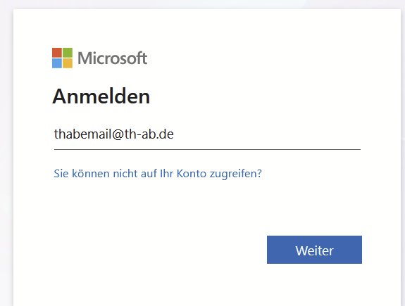 Geben Sie ihre THAB Emailadresse ein und klicken Sie auf Weiter