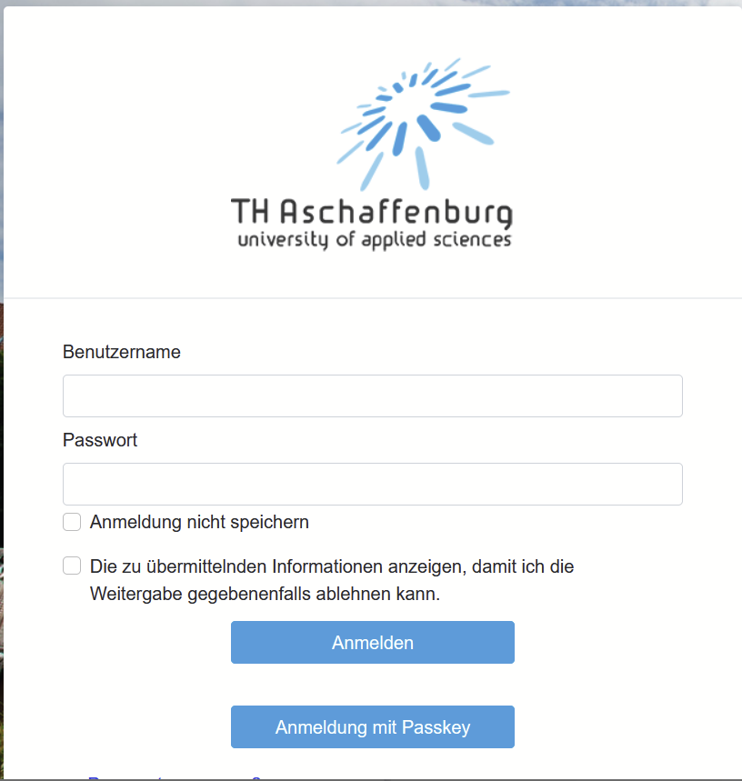 Melden Sie sich mit ihren THAB Zugangsdaten bzw. mit einem Passkey an