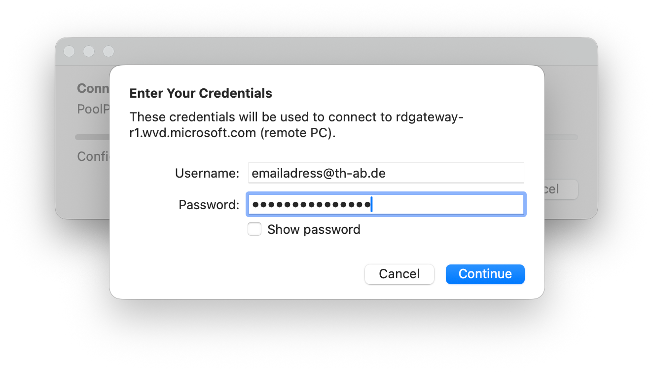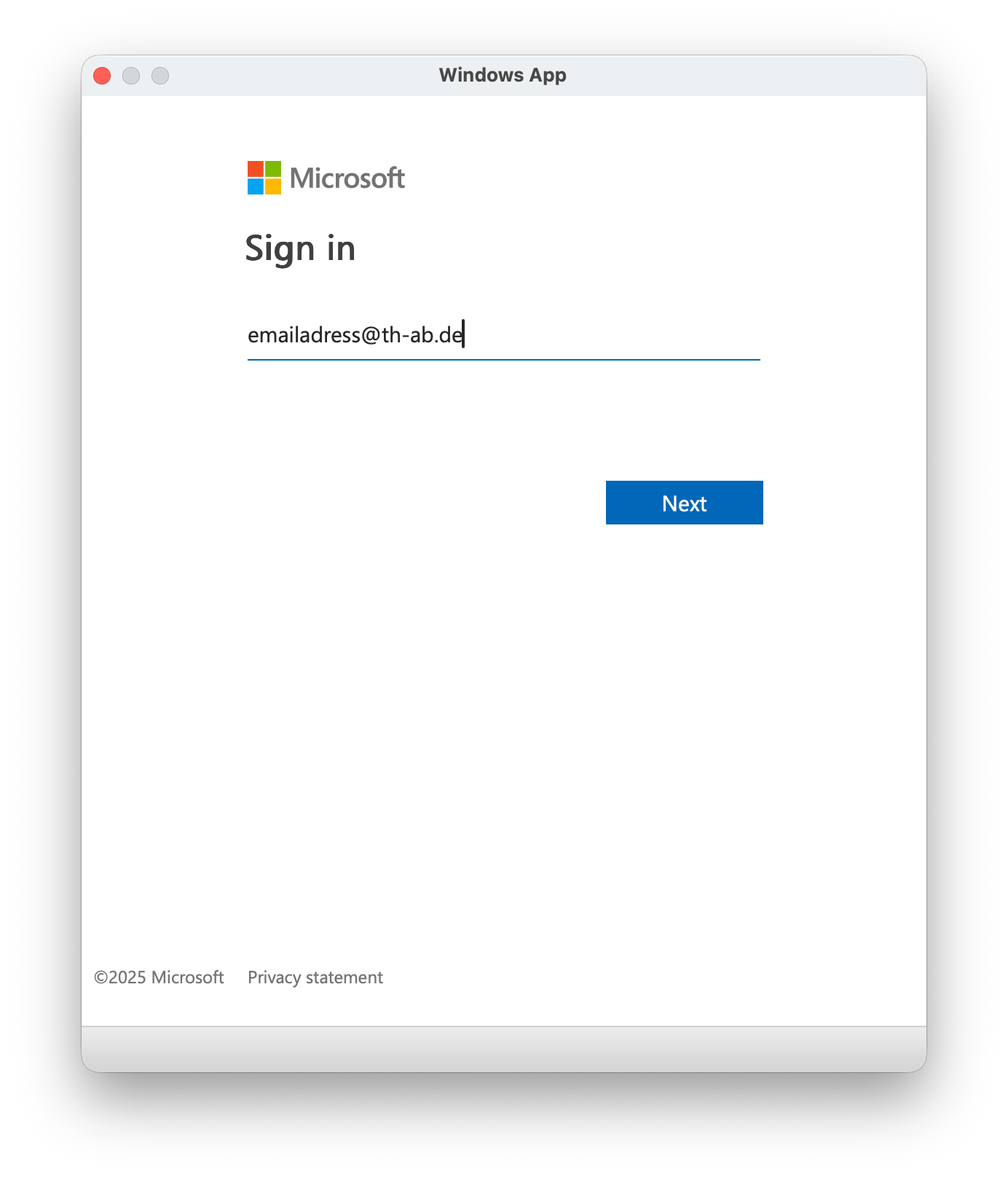 Geben Sie ihre THAB E-Mailadresse und Passwort ein