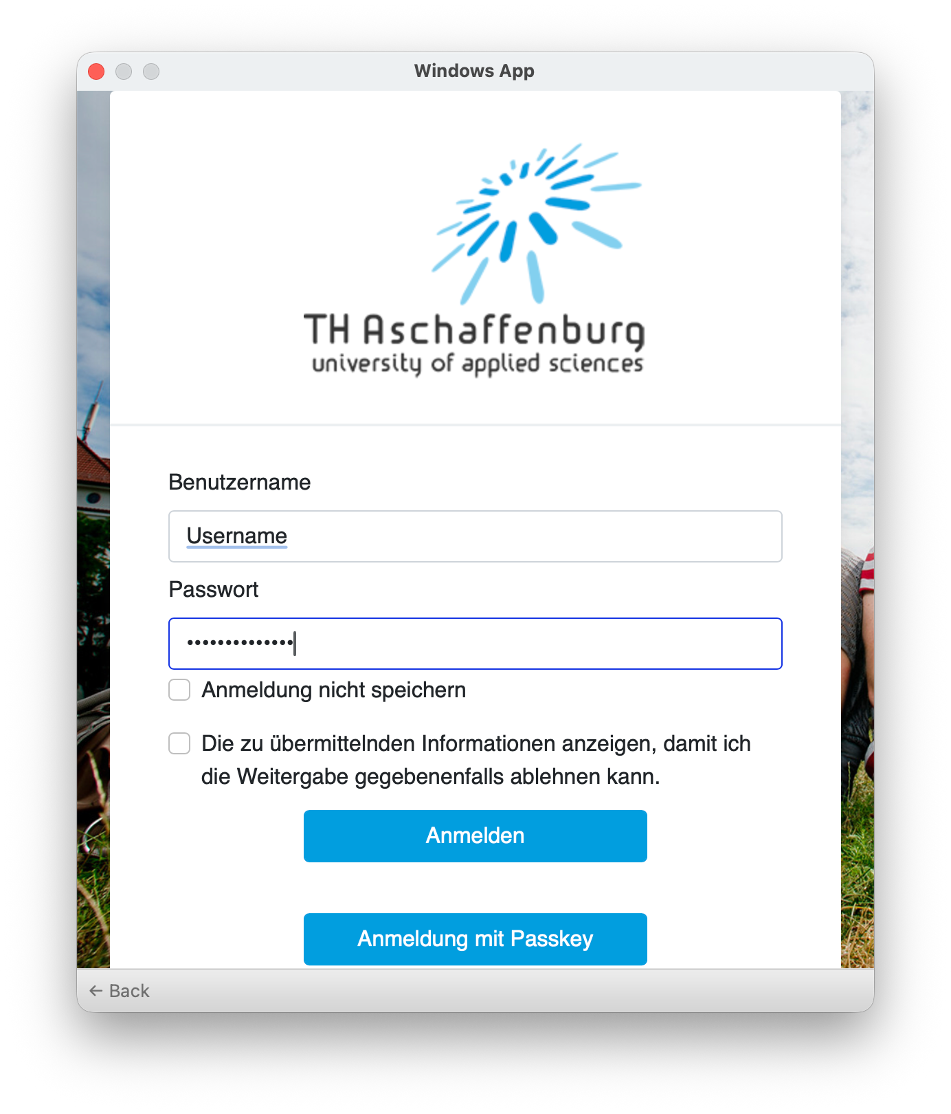 Melden Sie sich mit ihren THAB Zugangsdaten an